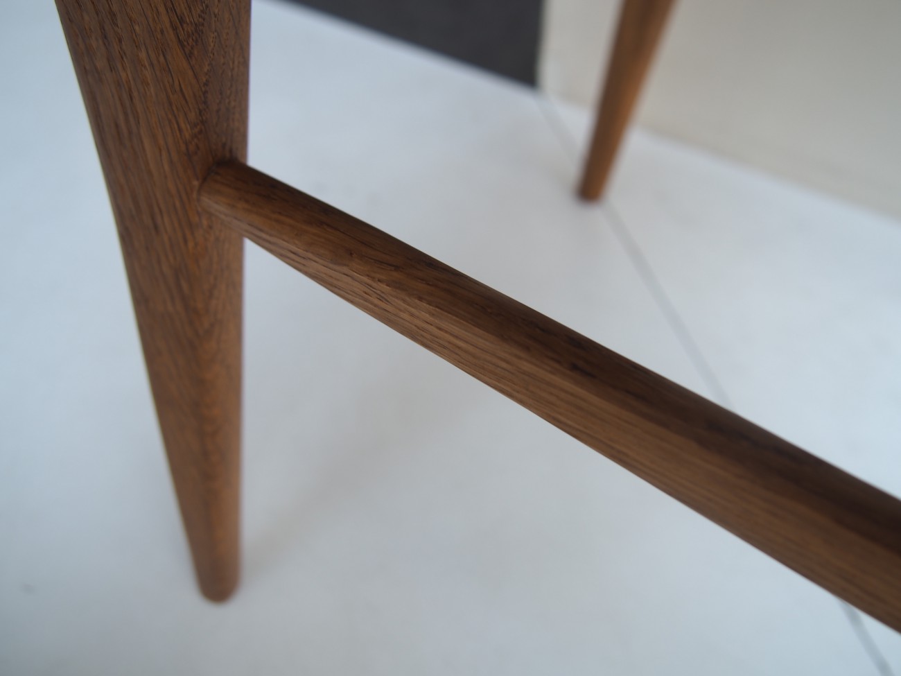 デザインをよく見ると、脚貫が途中から丸棒から直線に変化していたり、後ろ脚の面は直線を活かしたデザインですが、
