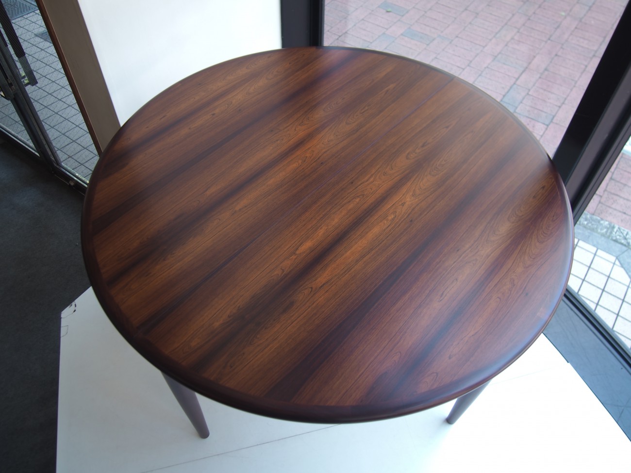 お客様が長年大切に使用されていたJ.L.モラーの貴重なローズウッドのラウンドダイニングテーブルの再仕上・修理のご依頼を頂きました。