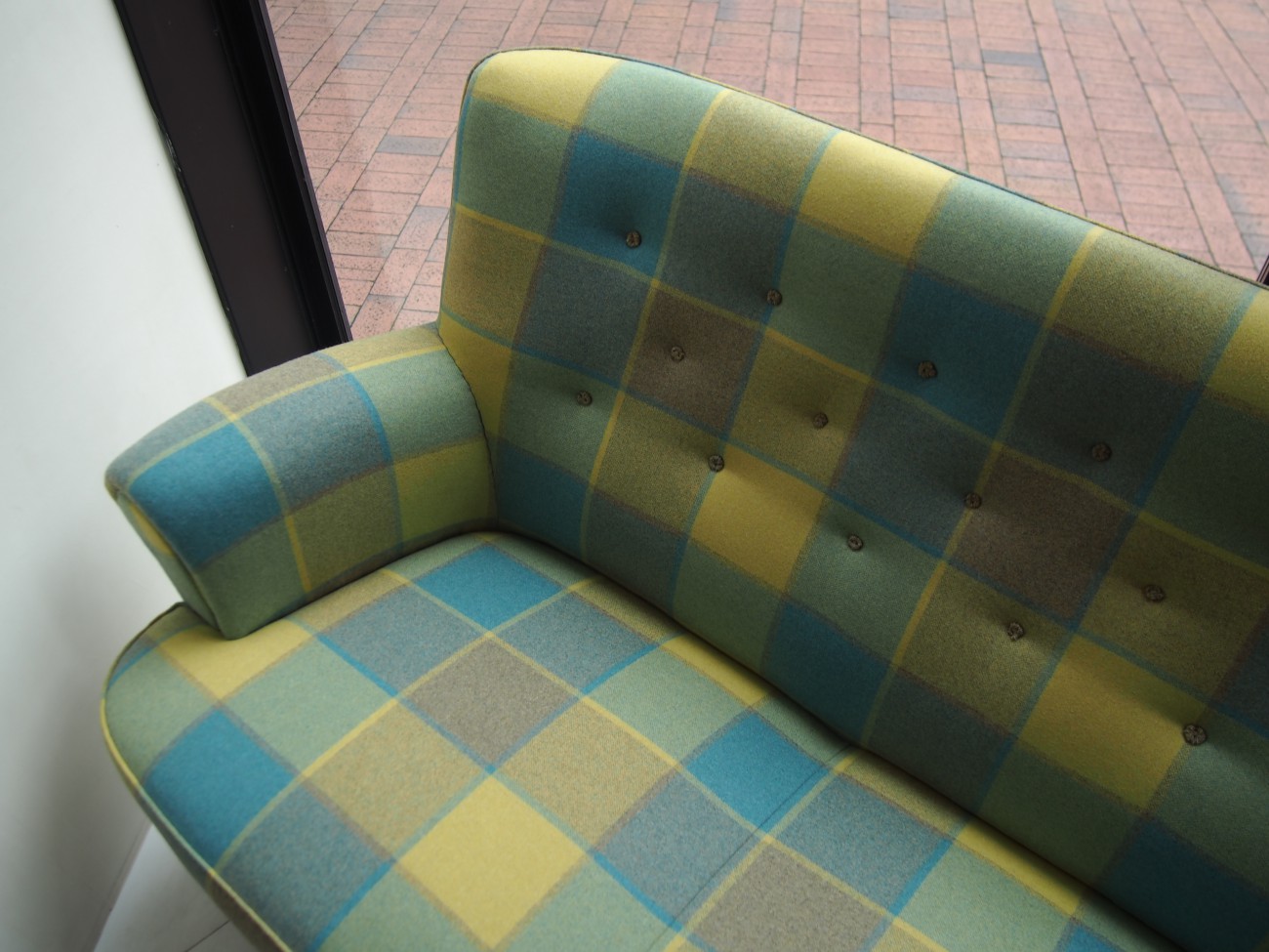 ■張地は海外製の1mあたり¥19,116のウールをメインにした肌触りの良い上質な生地を贅沢に使用して、熟練の職人が、座り心地の改善を行い、手縫いなども行いながら丁寧に張替済みです。