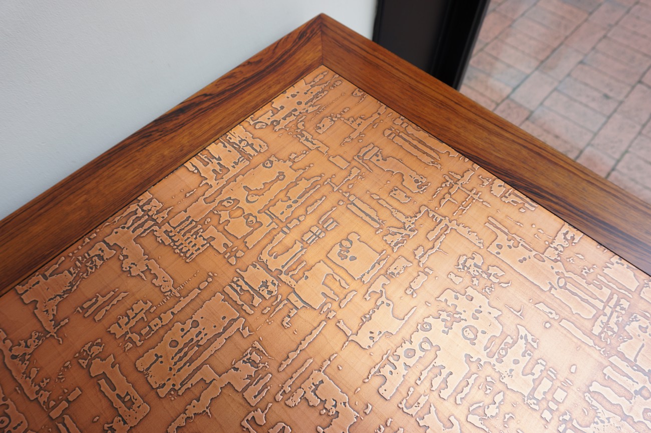 木部は貴重なローズウッド材、天板は珍しい銅板を使用しております。