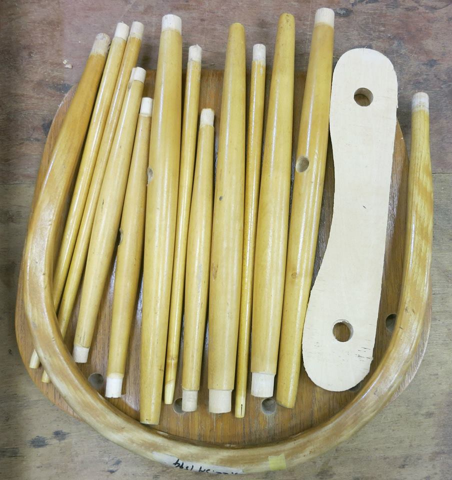 下記の写真の様に、元々入れられていたくさびを埋め直し、写真の状態の後に、さらに木の性質に即した方法で、最初に入れられていたくさびよりも丈夫で長持ちする方法で再度くさびを打ち直して、より末永くお使い頂けるようにリペア致しました。