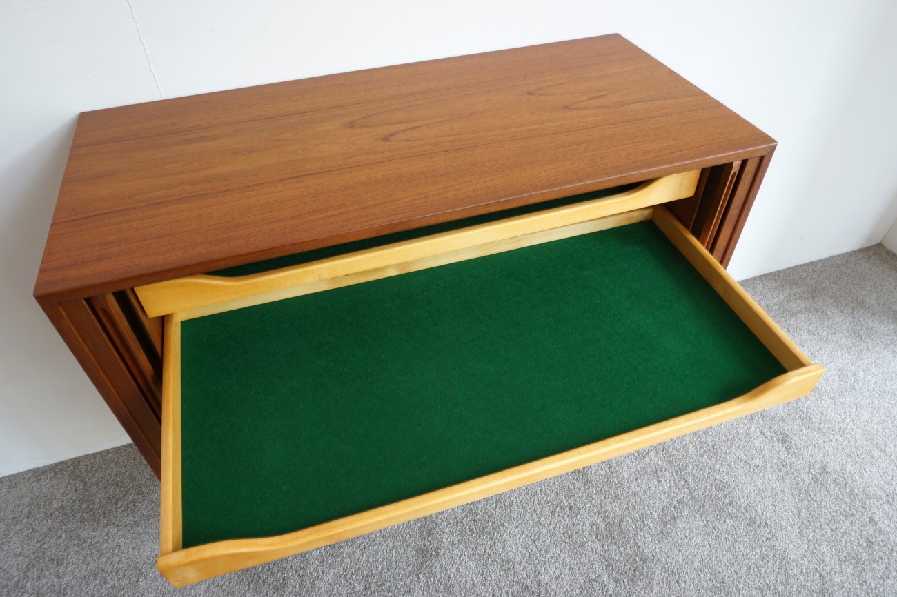 1950~60年代前後以降に製造されたカイクリスチャンセンデザイン、FM mobler社製ビンテージのチーク蛇腹キャビネット。