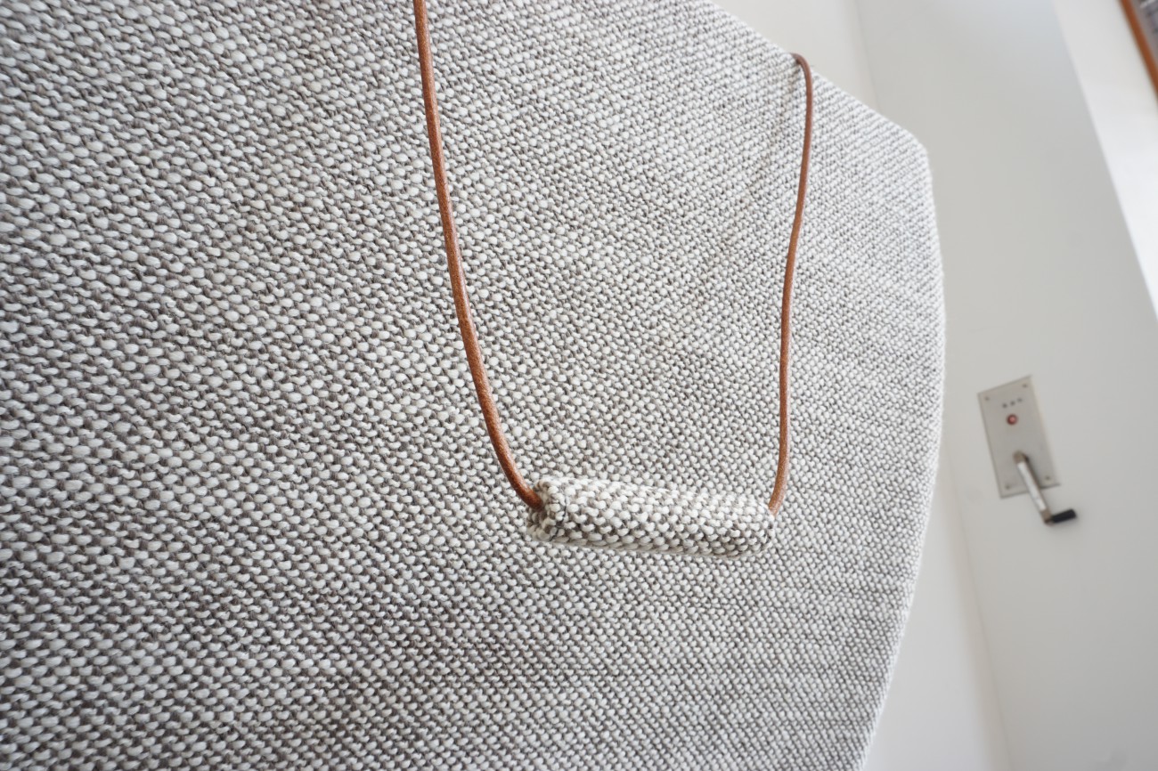縦横で異なるカラーをミックスさせたベージュ系の生地でランダムに太さを変えたりウェーブしていたりとリズミカルで素材感を楽しめる生地です。