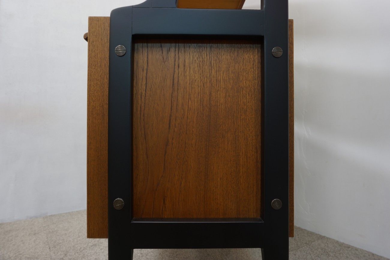 また、背板もチーク材が張られていますので、お部屋を緩く仕切る間仕切りの様な形でも設置して頂けます。
