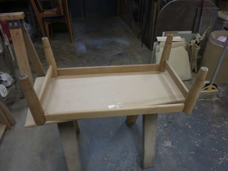 数日(1~2日では有りません)時間を掛けて丁寧に作業を行っており、ただ削り直すだけではなく、オリジナルの意匠(直線やカーブの角度、デザインの美しさ)は大切にしつつ、そのままでは強度的に不安な部分に専門的な木工の知識の元、細かい部分まで職人が手を入れて、見た目を損ねない方法で補強を入れたり、接合部分の再接着を行いやメンテナンスを行っておりますので、安心してお使い頂けます。